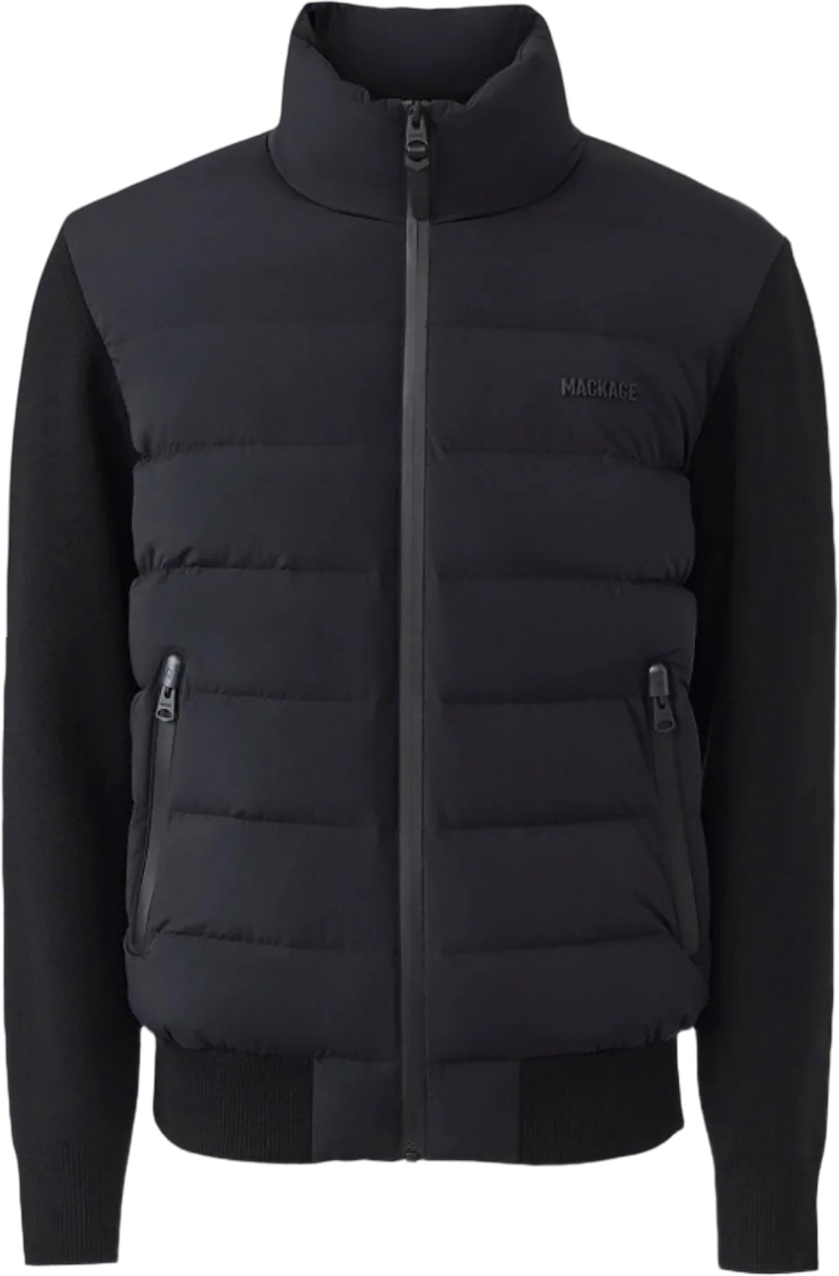 • Signature Mackage logo at chest