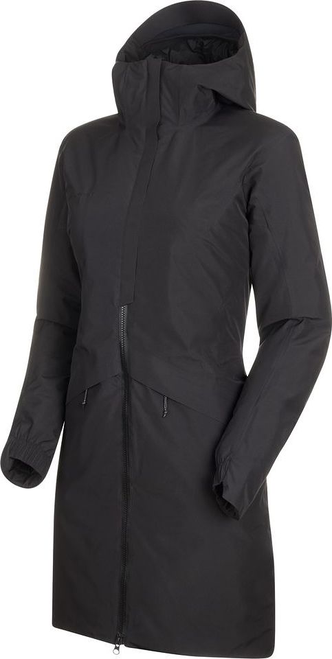 Clean lines and a dense goose down filling characterize the 3379 HS Thermo Hooded Coat Women from our Delta X Collection. The 2-layer Gore-Tex® material makes the jacket wind- and waterproof, so it is prepared for any change in the weather. A large storm flap behind the front zipper with laser-cut MAMMUT logo regulates the width and ventilation of the jacket. Practical for the urban environment: The detachable carrying system on the inside of the jacket allows you to carry it like a backpack when needed, giving you more flexibility.