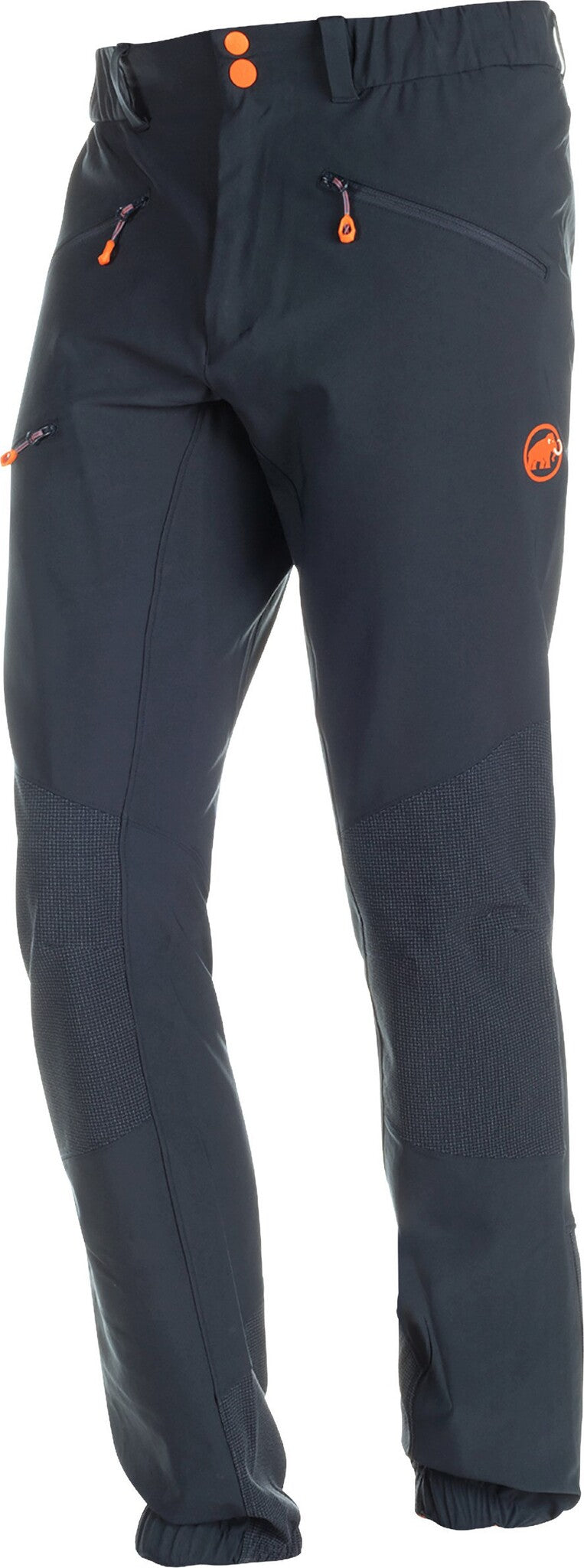 Up in the mountains, you need equipment you can rely on. The Eisfeld Advanced SO Pants Men from the Eiger Extreme Collection combine a highly elasticated Schoeller®-dryskin soft shell material with robust, elasticated Cordura inserts for optimum freedom of movement, breathability and abrasion resistance, to allow you to move freely in the mountains. The Mammut® Vertical Motion Technology™ also optimizes the pants’ cut for alpine movement sequences to make sure your clothing doesn't hold you back. The pants are designed to allow them to be worn with a climbing harness. Additional features such as different pockets add the finishing touches to the design