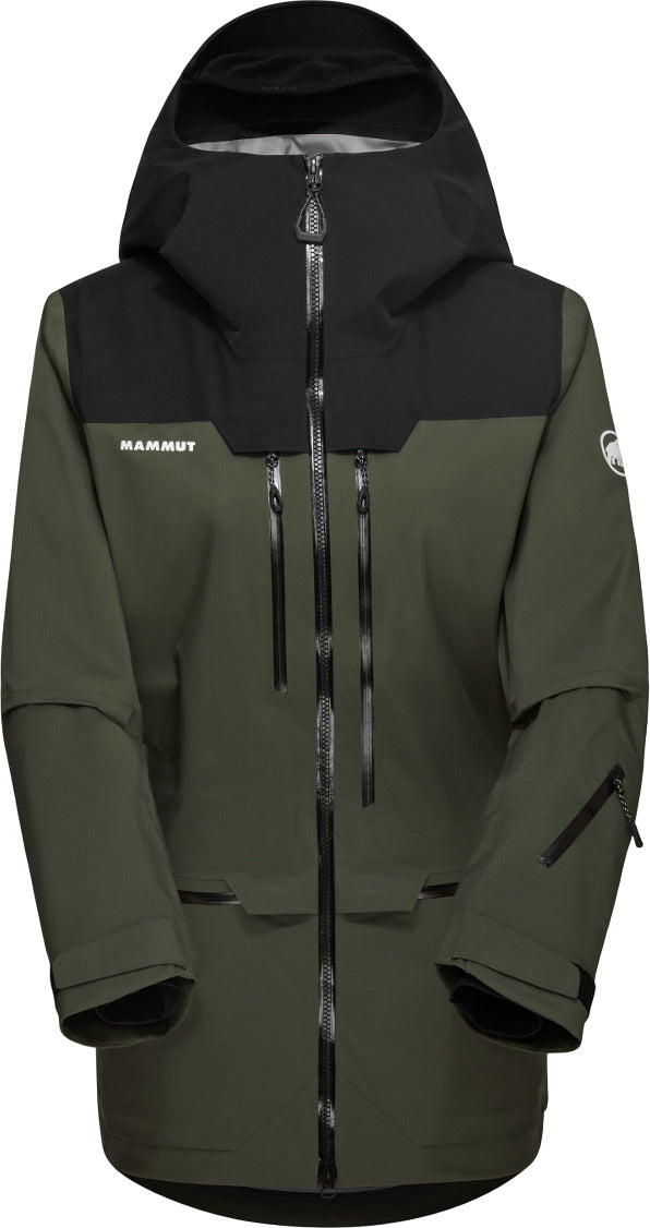 The Haldigrat is light enough for the ascent and burly enough for the descent thanks to a supple, sustainable outer fabric made of durable post-consumer recycled nylon, and a Drytech Pro Technology waterproof membrane. A freeride-inspired long cut offers a laid-back style loaded with features. It features plenty of pockets, a helmet-compatible hood and underarm vents.