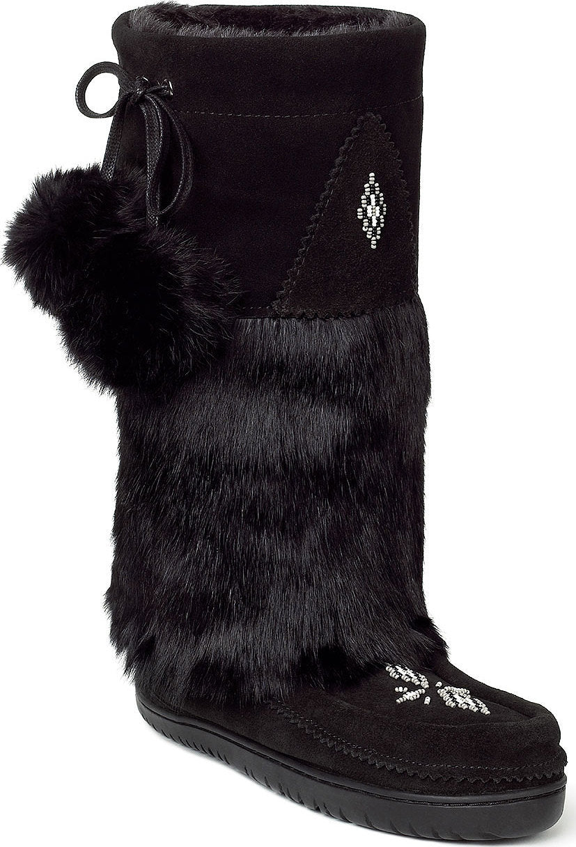 The women’s SNOWY OWL Mukluk is an iconic style passed down by generations of this proudly contemporary Métis company. This ‘mukluk’ or winter boot combines traditional style with modern techniques and materials. It features an ultra-soft sheepskin shearling lining and footbed. The cowhide suede upper is decorated with authentic beadwork and stitching. Rabbit fur trim along the ankles enhances warmth. An Authentic Waterproof System inspired by traditional pine pitch and spruce gum treatments ensures a snowproof seal 4” from the bottom. The durable outsole is the result of a partnership between Vibram and an Indigenous artist.