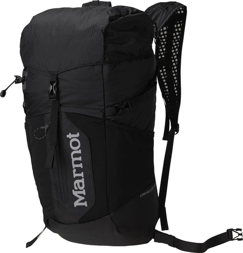 The ultralight Marmot Kompressor maximizes comfort and portability. Let's tally the perks: breathable airmesh back panel, ergonomically designed airmesh shoulder straps, sturdy yet lightweight fabrics, a roomy hood to store key items, and wrap-around compression to give you extra load-shrinking ability. Side bottle pockets allow you to easily store (and reach) your water.