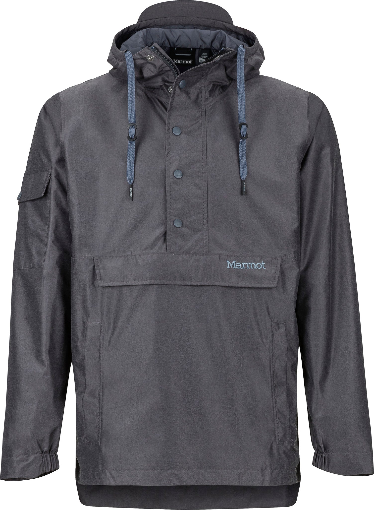Features : • Membrain® Eco 2.0 Lamination 100% Recycled Nylon Solution Dyed Plainweave 3.4 oz/ yd • Marmot MemBrain® Eco Waterproof/Breathable Fabric • 100% Seam Taped • Side Zipper Access • Attached Hood with Draw Cord Adjustment • Center Front Zipper with Snap Windflap • Kangaroo Pocket with Zip Closure • Tunnel Through Hand Pockets • Drop Tail Hem For Increased Coverage