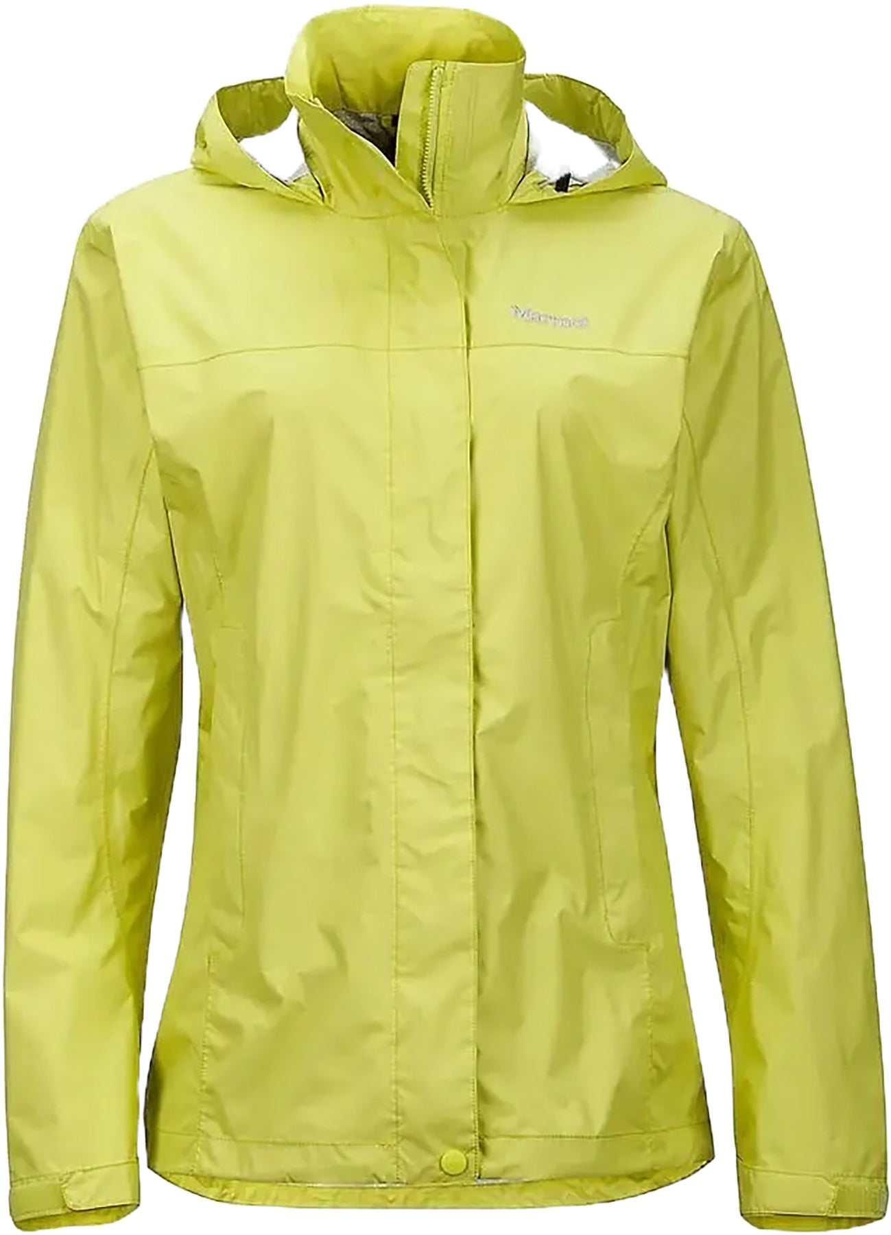 The women's PreCip jacket was designed for outdoor adventures, rain or shine, with the waterproof, seam-taped and breathable construction expected from an emergency shell. It features Marmot's most comfortable waterproof/breathable coating technology. NanoPro's™ superior microporous structure is air permeable, allowing ventilation to help shed excess sweat without compromising on weather protection. It's also outfitted with Angle-Wing Movement™ tech, which allows uninhibited motion through the arms. Underarm PitZips™ also allows quick and comfortable ventilation, and zippered pack pockets™ lets wearers stuff this jacket away when the storm stops.