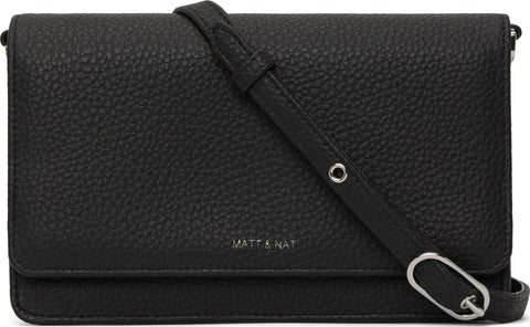 • Interior: 12 card slots, 2 bill compartments, zipper coin pocket, logo-embossed Purity patch