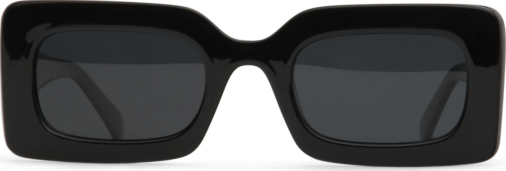 Rectangle shape glasses with coloured frame and polarized lenses.