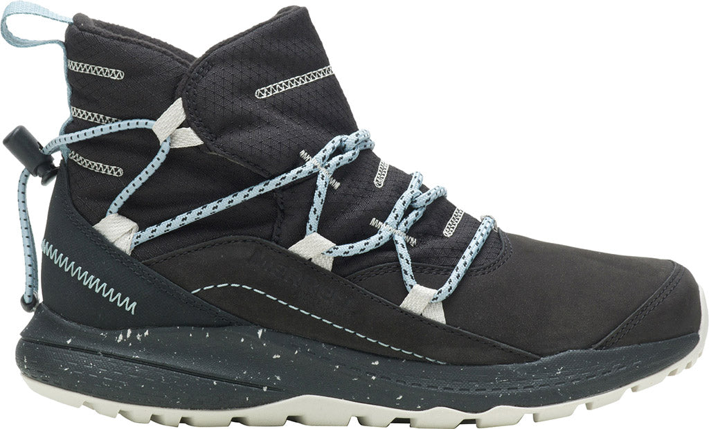 • Waterproof membrane seals out water and lets moisture escape • Waterproof nubuck and nylon upper • Bungee lace with toggle closure for a secure fit • 100% recycled webbing • Bellows tongue keeps out debris • 100% recycled fleece lining • 100 grams lightweight, low bulk insulation keeps you comfortable • 100% Recycled Fleece Lined EVA Footbed • Rock plate for protection • Super Rebound Compound provides durable shock absorption in the heel to help reduce torque and allow for a smooth transition into the midfoot. • Merrell mountain-grade Quantum Grip™ rubber outsole • Drop: 8mm • Lug: 4mm • 1lbs-6oz, 600g