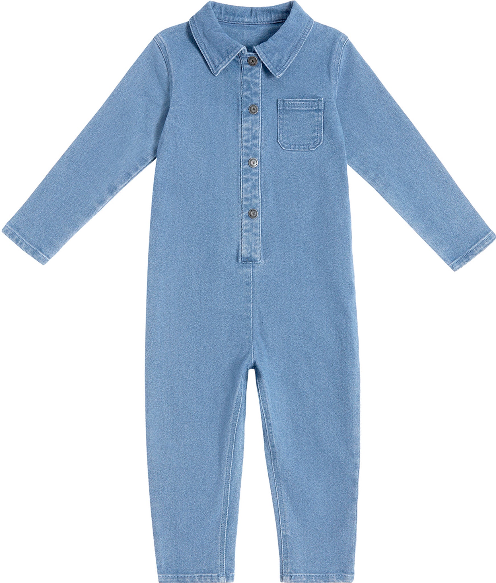 This baby boiler suit is the perfect blast from the past! The long sleeved, organic cotton denim will leave baby feeling comfortable and cool all day long. With buttons down the front, the vintage playsuit can be pulled down for quick changes on the go.