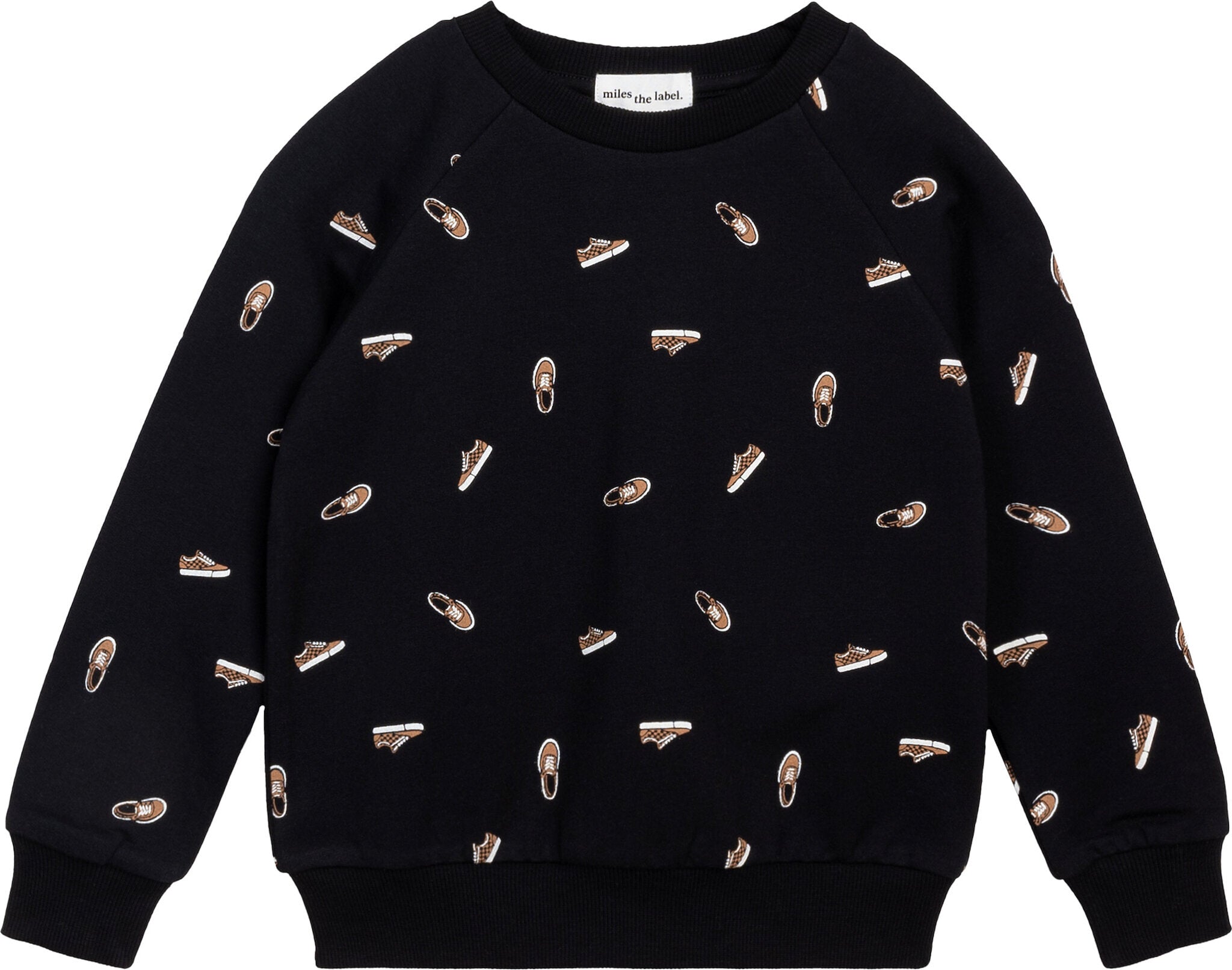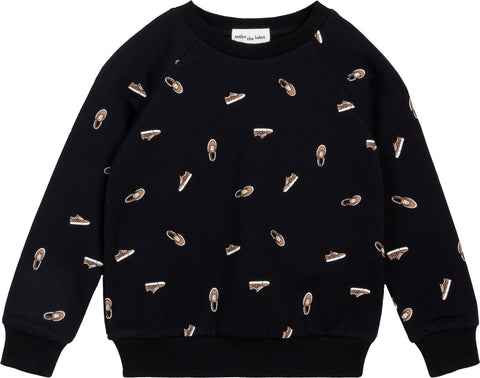 Perfect for kicking back in a fresh pair of kicks, this sneakers print sweatshirt will finish their outfit with style and comfort-exactly what they need for school or a day of fun. The rounded neckline makes the sweatshirt easy to pull on and off while the ribbed cuffs provide a snug fit that's easy to layer over t-shirts on chilly days. Made from organically grown cotton, the top is light and breathable to keep them at just the right temperature no matter what the days has in store.