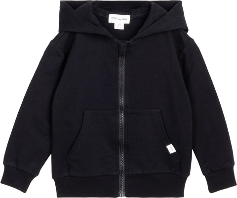 A black zip hoodie is a staple for kids always on the go. Practical and easy to layer over any outfit, the hoodie can be worn open or zipped to the top to keep out the cold. The ribbed cuffs offer a comfortable fit on the arms while the elasticated waistband provides a snug fit.