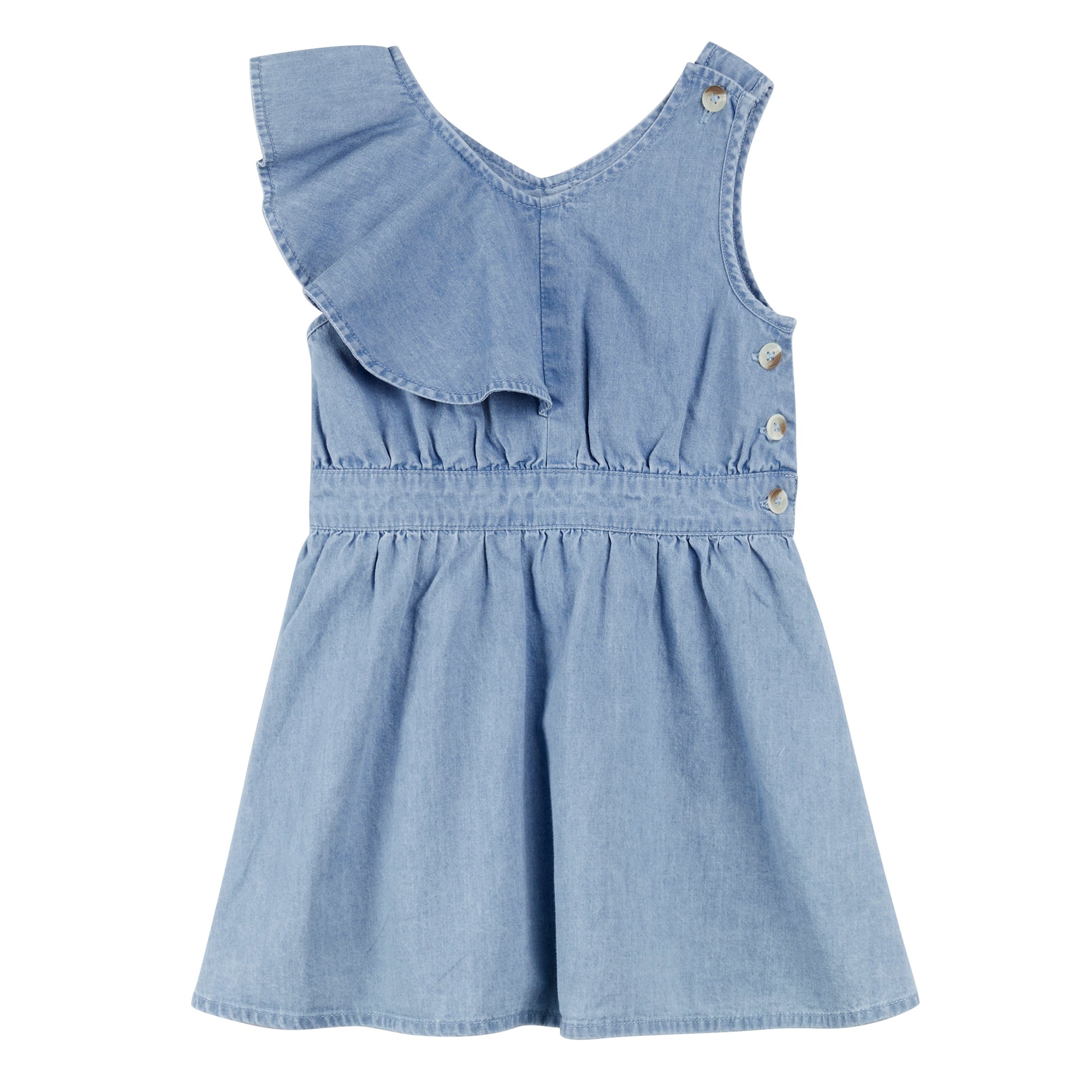 This chic dress has a ruffle detailing across the front, creating a sophisticated statement when out for dinner with the family. Made with organically grown cotton chambray, it’s light and breathable, giving her the freedom to play and dance without feeling restricted. Buttons on one side of the romper make dressing easier while providing a tailored fit once buttoned up.