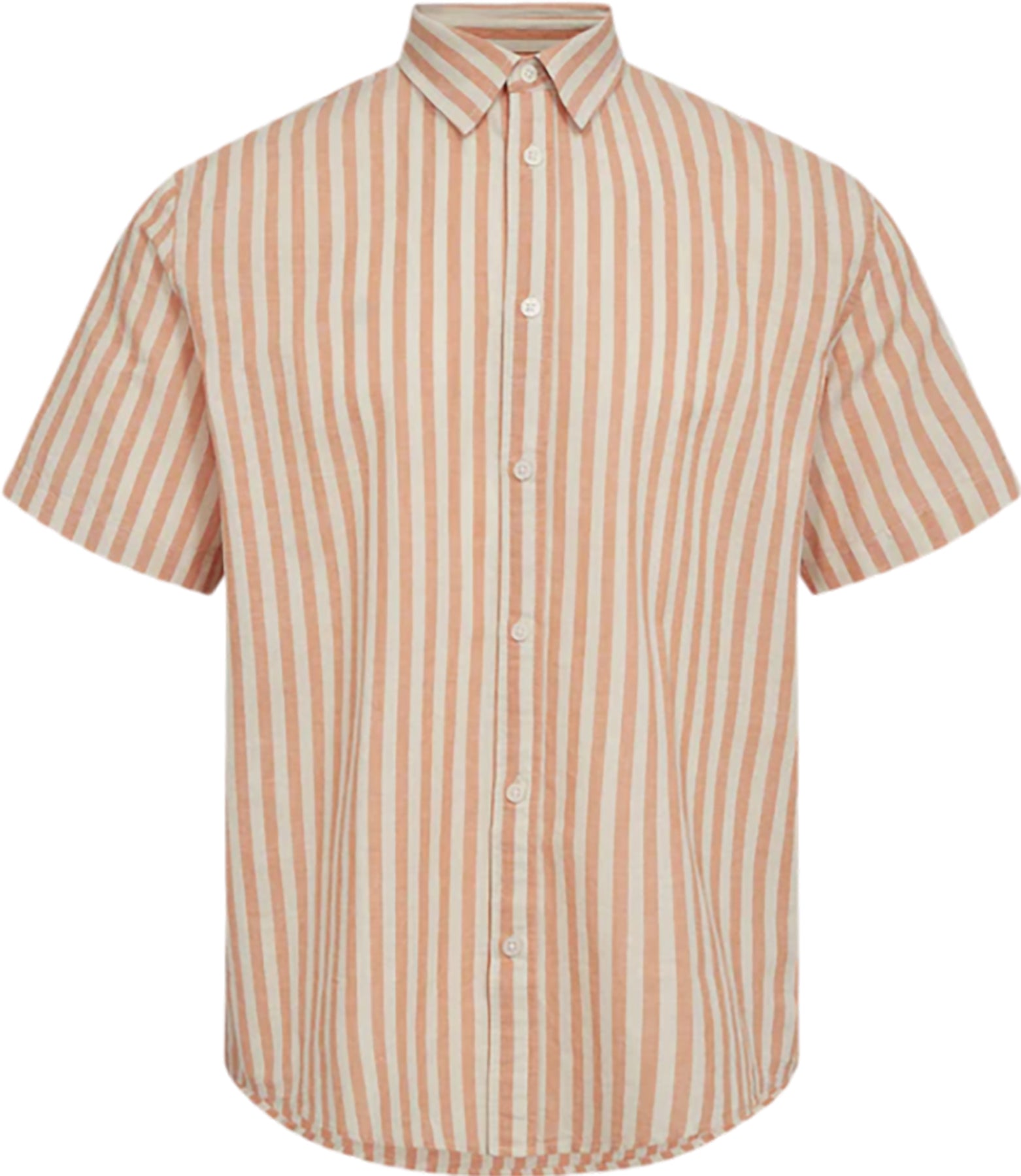 Eric 3070 is a striped short-sleeved shirt crafted from organic cotton and linen for a simple quality. The shirt has a relaxed fit and features a classic collar and a button closure.