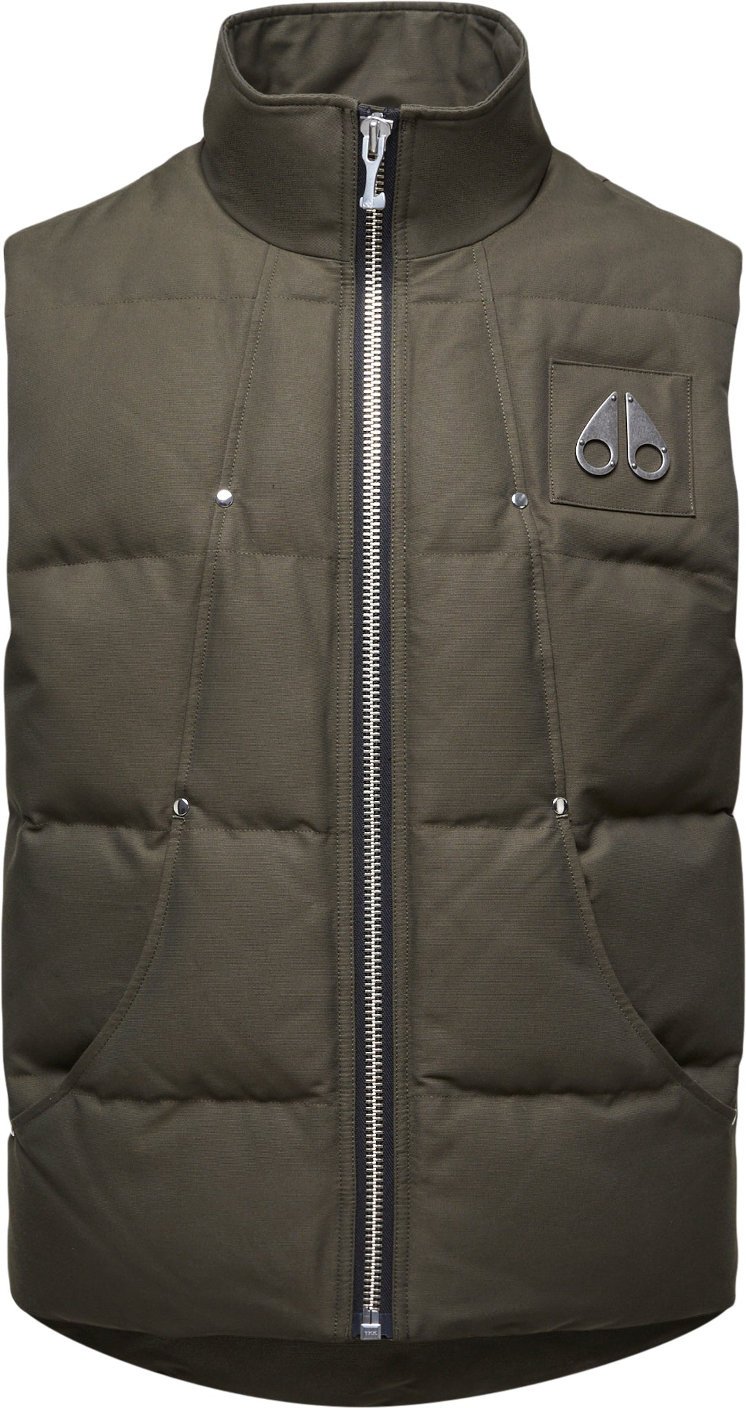 The Montreal Vest is made of a water repellent and wind resistant cotton and nylon blend with nylon down proof lining. Breathable and light (yet prepared for inclement conditions), this style also features distinct touches like the signature curved "J" seam down the torso and a Moose Knuckles metal logo at the chest.