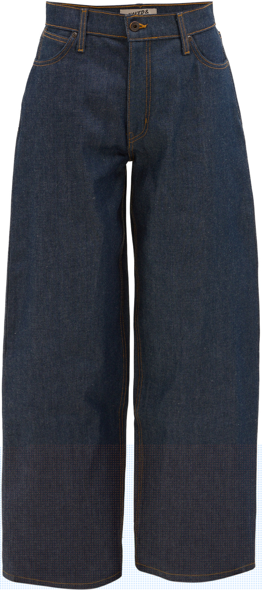 The Natural Indigo Denim is a indigo rope dyed Japanese denim. Natural indigo dye derived from fermenting the indigofera plant is used to create the mid blue color tone of this denim. Wide Wild West is a 5-pocket jean that brings laid-back attitude to a classic silhouette-relaxed-fit featuring a wide, full-length leg.