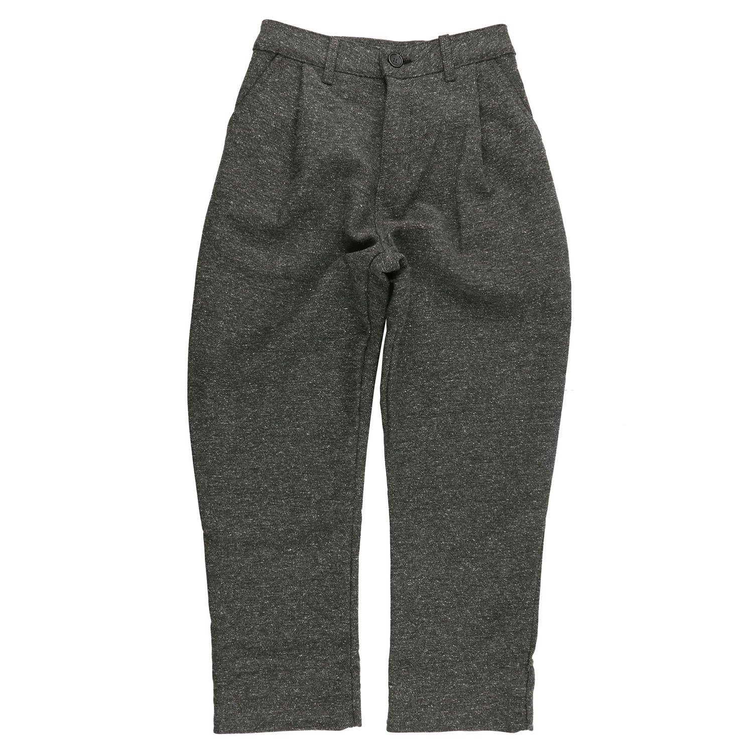 Relax Trousers is relax fit with wide cropped leg. Details include front pleats, slash hand pockets, and welt back pockets. A Japanese jazz nep double weave twill fabric with stretch for comfort.