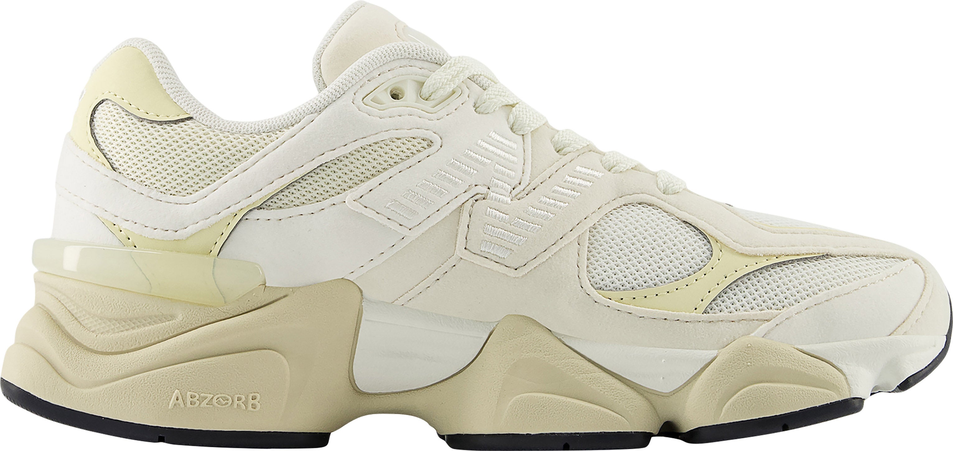 The 9060, available for kids, is a new expression of the refined style and innovation-led design of the classic 99X series. The 9060 reinterprets familiar 99X elements with a warped sensibility inspired by the proudly futuristic, visible tech aesthetic of the Y2K era. Sway bars, taken from the 990, are expanded and utilized throughout the entire upper for a sense of visible motion, while wavy lines and scaled up proportions on a sculpted pod midsole place an exaggerated emphasis on the familiar cushioning platforms of ABZORB and SBS.