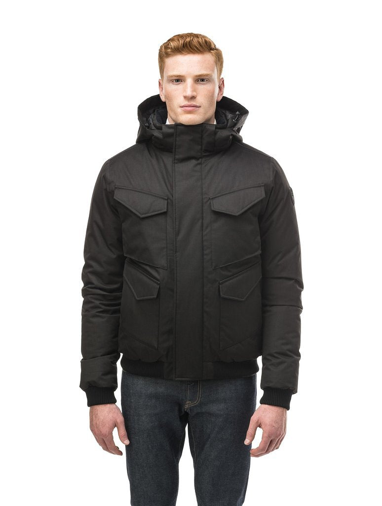 Features • 100% Polyester Crosshatch fabrication • Premium Canadian Origin White Duck Down • Highly breathable down proof free hanging liner • Removable down filled hood • Interior chest pocket • Angled waist pockets with side hand warmer pocket entry • Heavy elastic ribbed cuffs and hem • Seam seal construction • Windproof, waterproof and breathable • Machine washable • Designed in Canada, imported