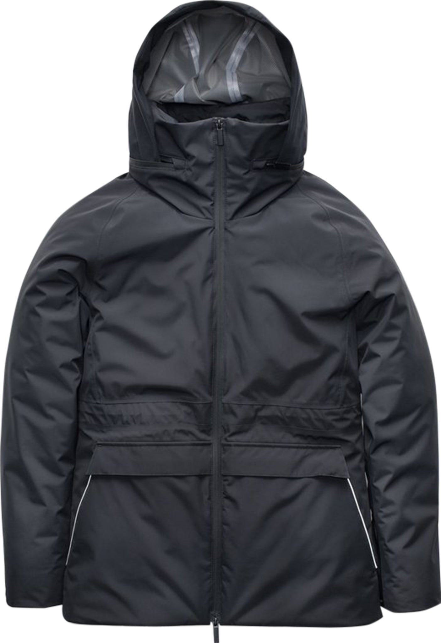 Features • Premium 3-Ply Micro Denier fabrication with DWR coating • Non-removable tuck away hood at collar • Exposed 2-way zipper • Hidden adjustable draw cord at waist • Two exterior side entry fleece-lined pockets at waist • Two interior chest zipper pockets • Seam seal construction