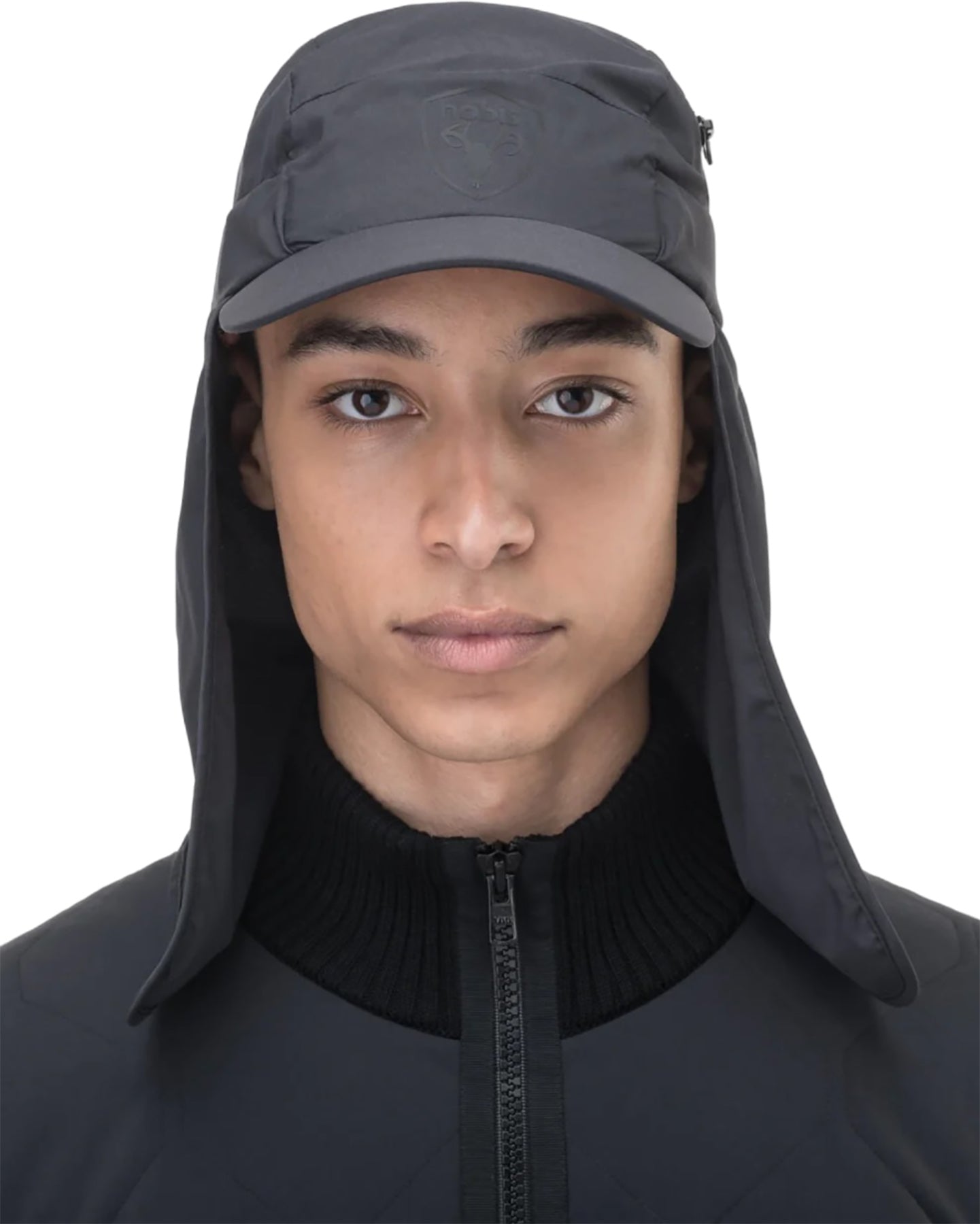 The Tal unisex cap bridges fashion and function with its unique 3-in-1 construction. Crafted from a premium, water-resistant stretch fabric, it offers added protection against the sun and rain with an adjustable brim to shield the eyes and face, along with a neck shade to cover the ears and back of the neck and a detachable face covering. A zippered pocket offers convenient storage for small essentials like cash and cards, while a cobra buckle at the back allows you to secure the perfect fit.