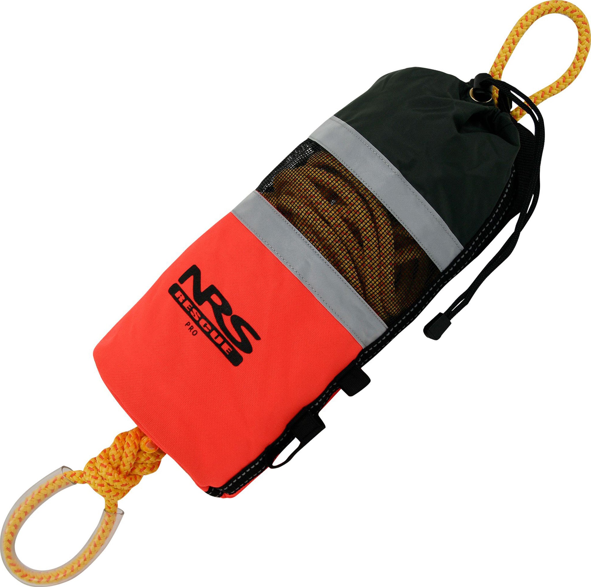 Features • Rugged Cordura® bag is highly visible for easy location on the water • The 3/8" Sterling Grabline rope is NFPA 1983,2012 certified. It has a tensile strength of 3,282lbs and the sheath has a raised pattern for excellent gripability • The rope floats for good visibility on the water • Wide mesh panel in the bag facilitates drainage and reduced dry tim • Two reflective bands and an elastic holster for a glow stick, or chem light, enhance visibility in low-light rescues • A barrel-lock drawstring is incorporated in a flared nylon top for smoother throws, plus easy reloading and closure • 1" webbing with side-release buckle secures the top rope loop and lets you attach the bag to D-rings, boat frames, etc • Internal foam flotation keeps the bag on the top of the water where you need it for rescue • Polyethylene-sheathed grab loop makes it super quick and easy to hook on a carabiner