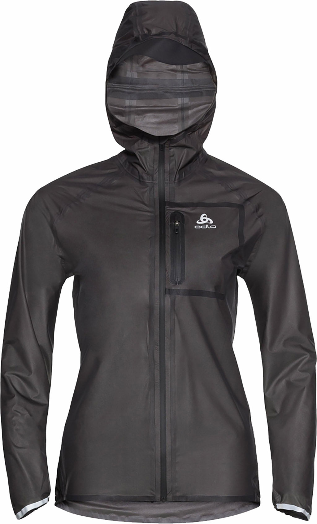 Brave the elements this season with the zeroweight dual dry waterproof running jacket for women, an innovative outer layer built to combat rain on the trails. Designed with dual dry waterproof technology, this running jacket delivers the optimal balance of breathability and waterproofness to help you stay dry from the inside out. An adjustable hood ensures perfect fit so you can utilise its rain brim without compromising peripheral vision. Meanwhile a zippered chest pocket helps keep your important items close at hand. Reflective details help increase your visibility to others in low-light weather and a lightweight stretchy feel makes this jacket supremely comfortable. Don’t let a little rain stop you this season, be prepared with the women’s zeroweight dual dry waterproof jacket from odlo.