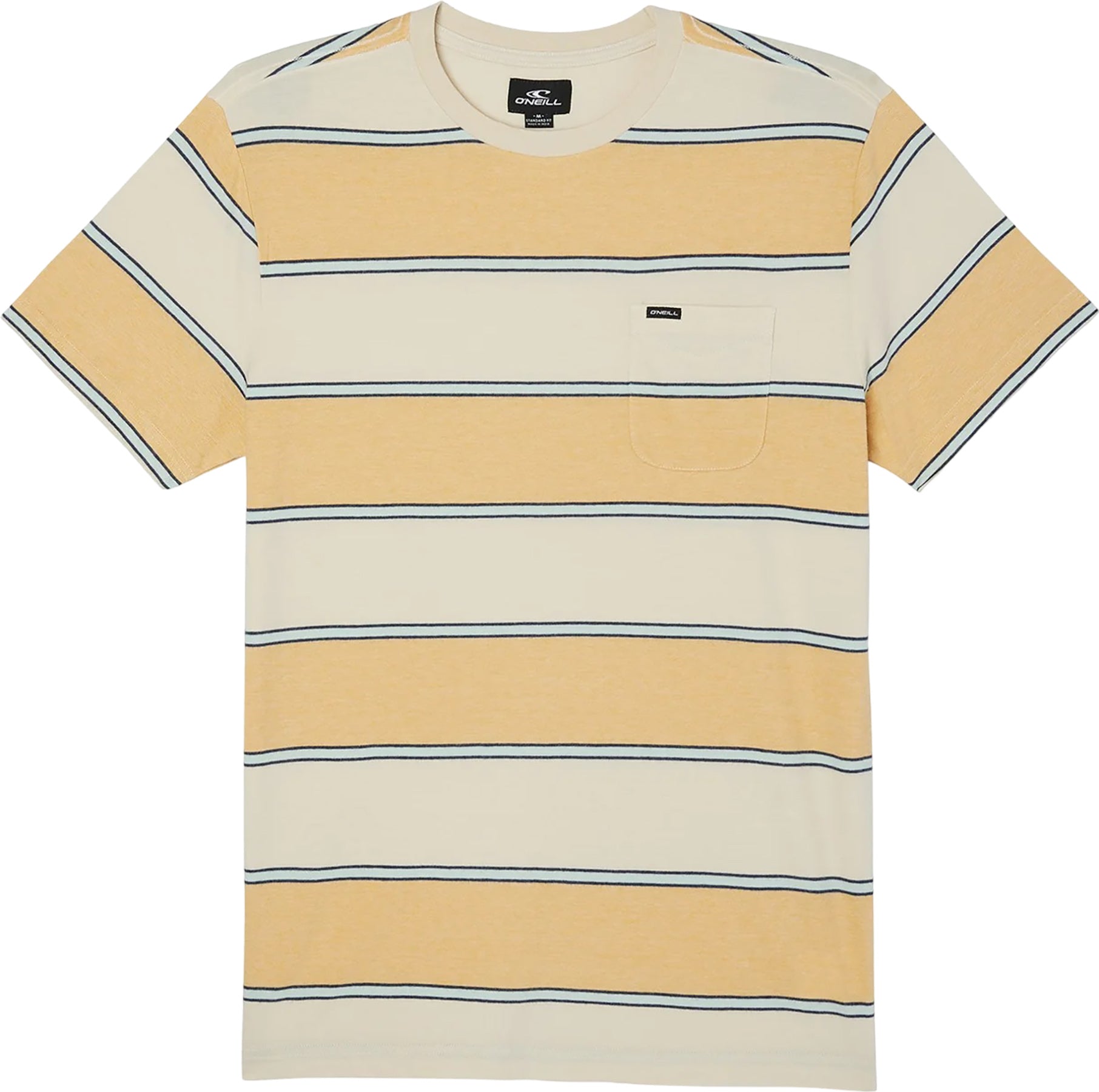 A classic striped tee that has a premium cotton blend design, front chest pocket and fits relaxed.
