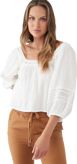 A fun and flowy woven top that has a square neck design, skimmer length fit and panel print detail.