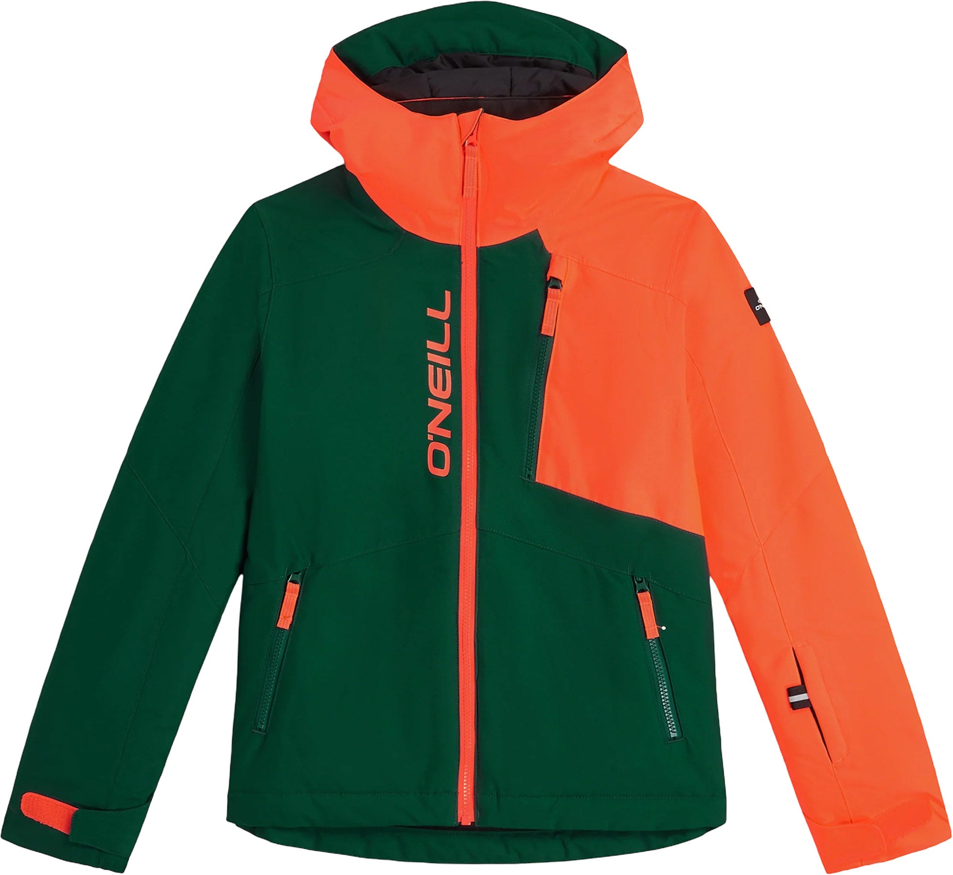 Designed for young skiers and snowboarders who love to stand out, the FWC'Cruz Block Snow Jacket combines eye-catching style with performance-driven features. A storm placket and snow gaiter protect from the elements, and 10K waterproofing and 10K breathability in combination with a PFC-free, water-repellent coating keep moisture out without causing overheating. Thanks to the built-in grow system, this jacket adjusts to your child each season, making it a mountain-ready highlight year after year. Featuring Repreve recycled polyester insulation, the jacket delivers ongoing warmth. Plus, it includes an easy-to-use repair patch, extending the lifespan of their gear so they can enjoy their playground longer. Designed for both young skiing and snowboarding.