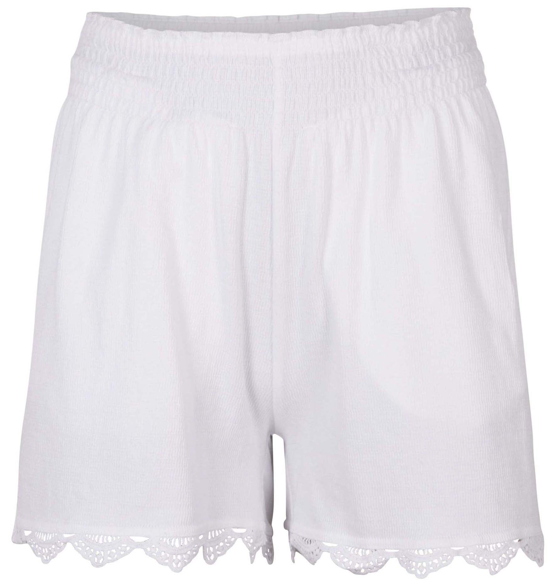 Pull on jersey shorts with a wide, smocked waistband sitting high on the waist and pretty lace detailing at the cuff. The Smocked Shorts are easy to style and give a feminine touch to your look.
