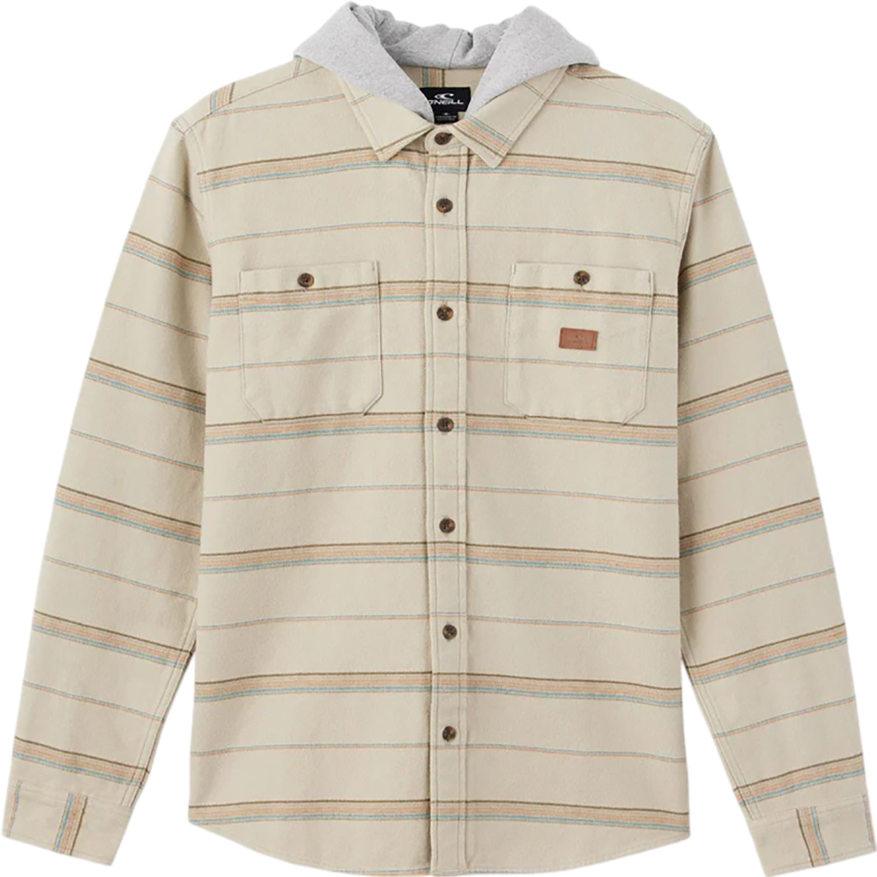 Features • Standard fit • Heavy weight brushed cotton flannel with fleece hood • Yarn dye stripe • Buttoned Chest Pockets • Adjustable cuffs
