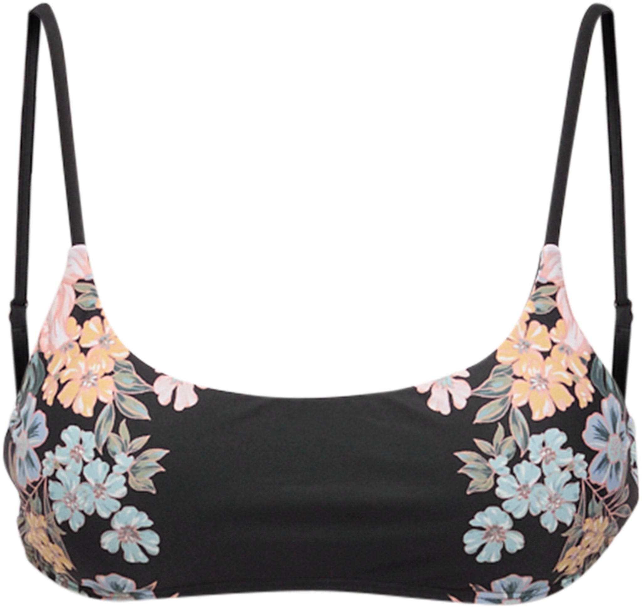 Head to the beach and soak up some sun in this bralette bikini top. It has a scoop neck design and allover print.