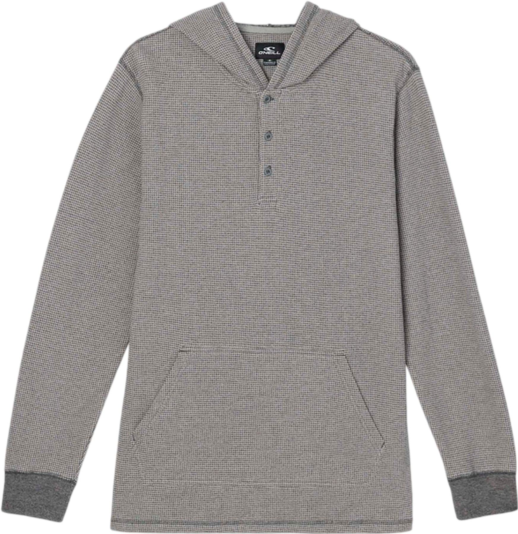 Dependable thermal hoodie that features a three button closure, front kanga pocket and fits relaxed in the body and sleeves.
