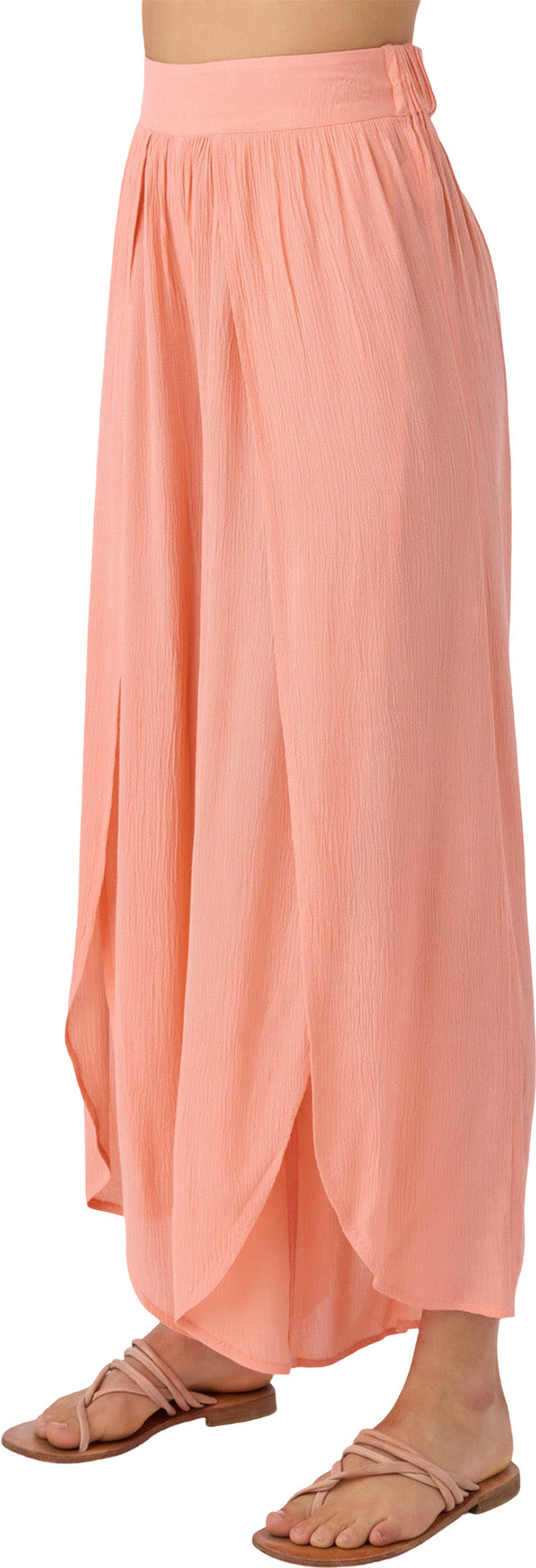 Laid-back, flowy woven pant that radiates effortless style. It features an elastic waist, wider fit and split leg detail.