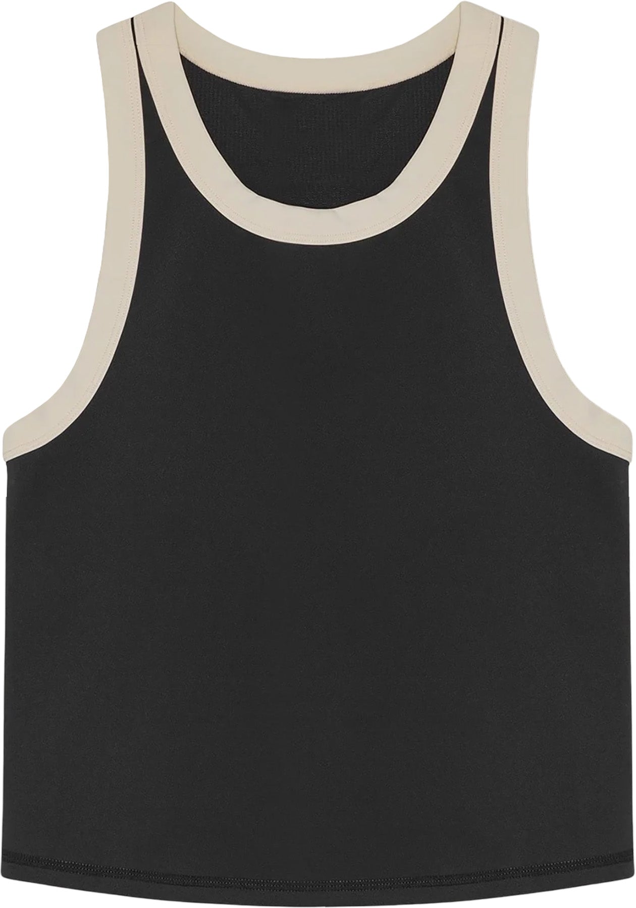Make exercise fun in the Active Flow Tank Top, featuring a sleek finish and cloud-colored binding for a retro twist. Recycling nylon helps reduce the environmental impact of its production by conserving resources and diverting waste from landfills. Recycled nylon is typically made with pre-consumer waste. Known for its durability, nylon can withstand frequent washing and wear without losing its shape. Additionally, its flexible, and compressive properties make it an excellent choice for activewear.