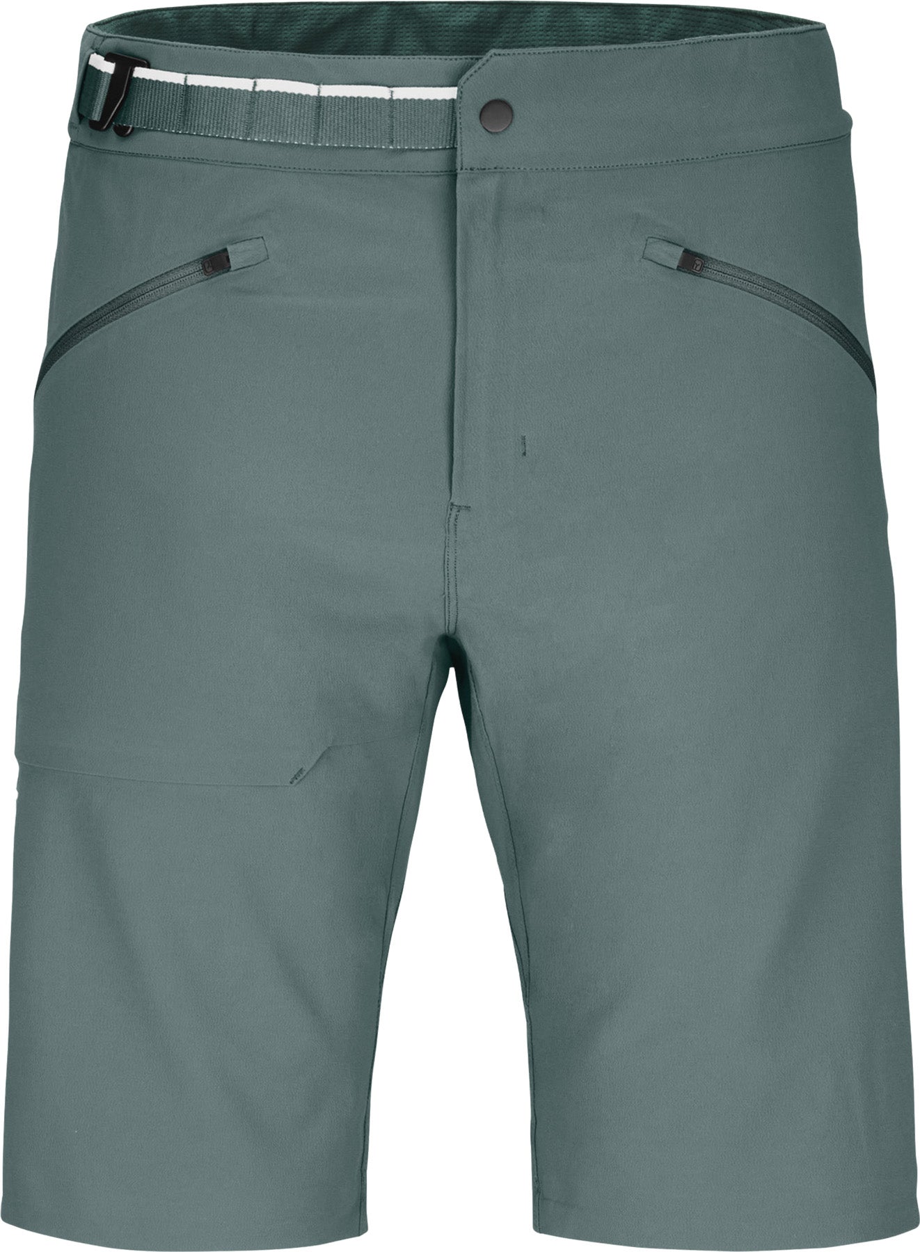 Developed for alpine adventures: The lightweight Brenta Shorts for men mirror every movement and won’t shy away from contact with a rockface. The durable Shield Light material withstands more than 80,000 abrasion cycles in the Martindale test, making it one of Ortovox’s most robust fabrics. The elastic 4-way stretch material guarantees optimum freedom of movement in the mountains and is also breathable, water resistant and quick drying. Thanks to their new, loose cut these shorts have a modern, comfortable fit. A hook on the integrated belt allows it to be fastened in just one move, and there is no need to unfasten it when taking the shorts off or putting them on. Two spacious front zipper pockets provide plenty of room for keys, money and a cell phone, while the thigh pocket has a hidden zipper and taped seams for additional storage room and a clean look. Merino mesh inserts in the waistband and pocket areas provide added comfort. The Brenta Shorts for men are PFC-free and climate neutral.