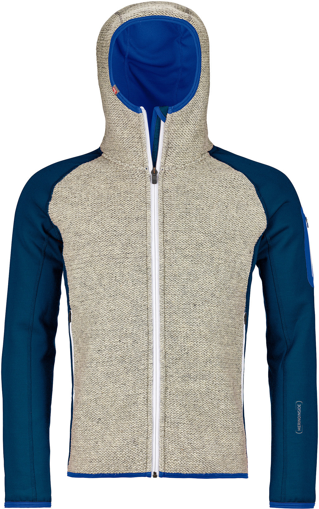 Out of tradition and conviction.Very warm fleece hoody with traditional Swisswool knit inserts.