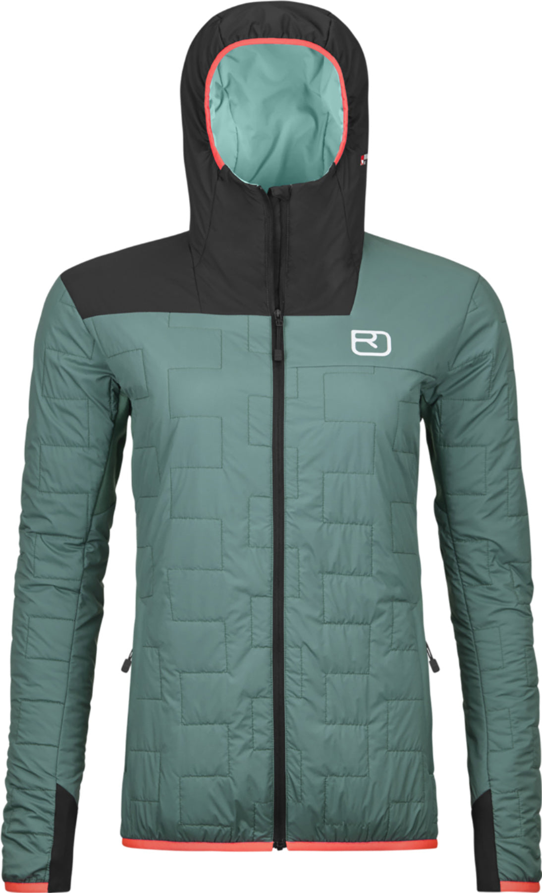 Turn up the Heat on even the speediest of couloirs with the Swisswool Piz Badus Jacket for women! The outer layer of the lightweight insulated jacket is made of quilted, elastic, breathable, and wind-resistant Tec Stretch material, while a 60g/m² lightweight, functional Swisswool lining on the inside keeps you warm without restricting your freedom of movement. The High-Reach-Performance Fit with ergonomic sleeve shape and side inserts made of elastic Merino Fleece ensures an Ideal Fit for Every Movement, while the pre-adjusted hood offers additional protection. The Swisswool Piz Badus Jacket for women also scores highly in terms of sustainability: Recycled polyester is used in addition to wool. The insulated jacket is also completely PFC-Free, Climate-Neutral and Made in Europe. The Swisswool Piz Badus Jacket for women creates an Excellent Weight/Insulation Ratio that really pays off when freeriding just as much as on fresh ski touring summits.