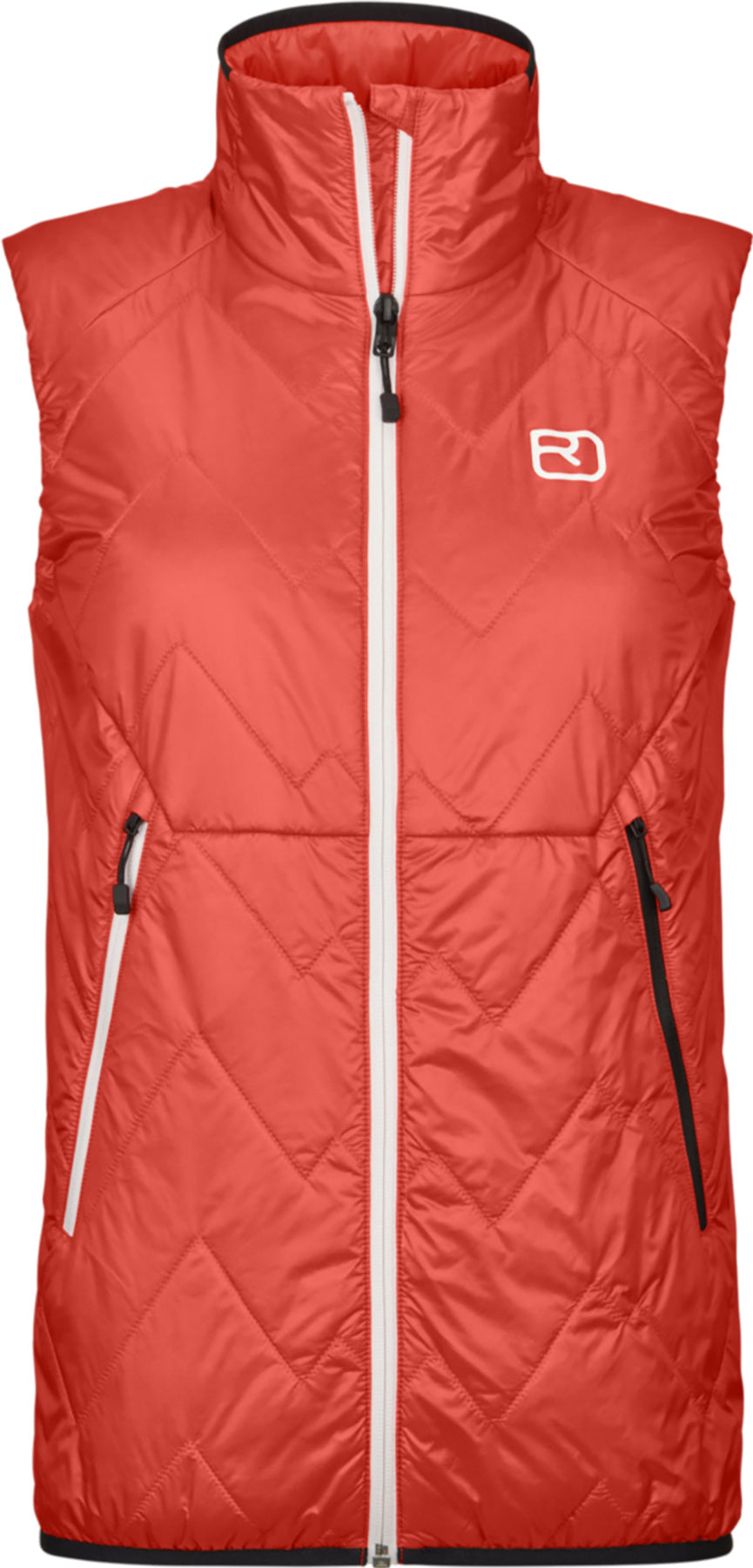 Even on biting cold winter days, the Swisswool Piz Vial Vest for women keeps ski tourers on track. With its full coverage 90g/m² lining and an ideal weight-to-insulation ratio, this is one of the warmest Swisswool items in the ski touring collection-the striking zig-zag, mountain-shaped quilting also gives it a cool look. The innovative Pertex® Quantum Diamond Fuse outer material consists of a thick-knit diamond-shaped yarn made from 100% recycled polyamide. This slightly shiny material is windproof, water resistant, breathable and extremely robust. The vest has a high collar and elasticated inserts on the armholes to combat the icy air in the mountains. The two front pockets are backpack compatible and easy to access. The active, ergonomic but casual cut provides maximum freedom of movement. And the Swisswool Piz Vial Vest for women is not just stylish and highly functional, but also climate neutral and PFC-free.