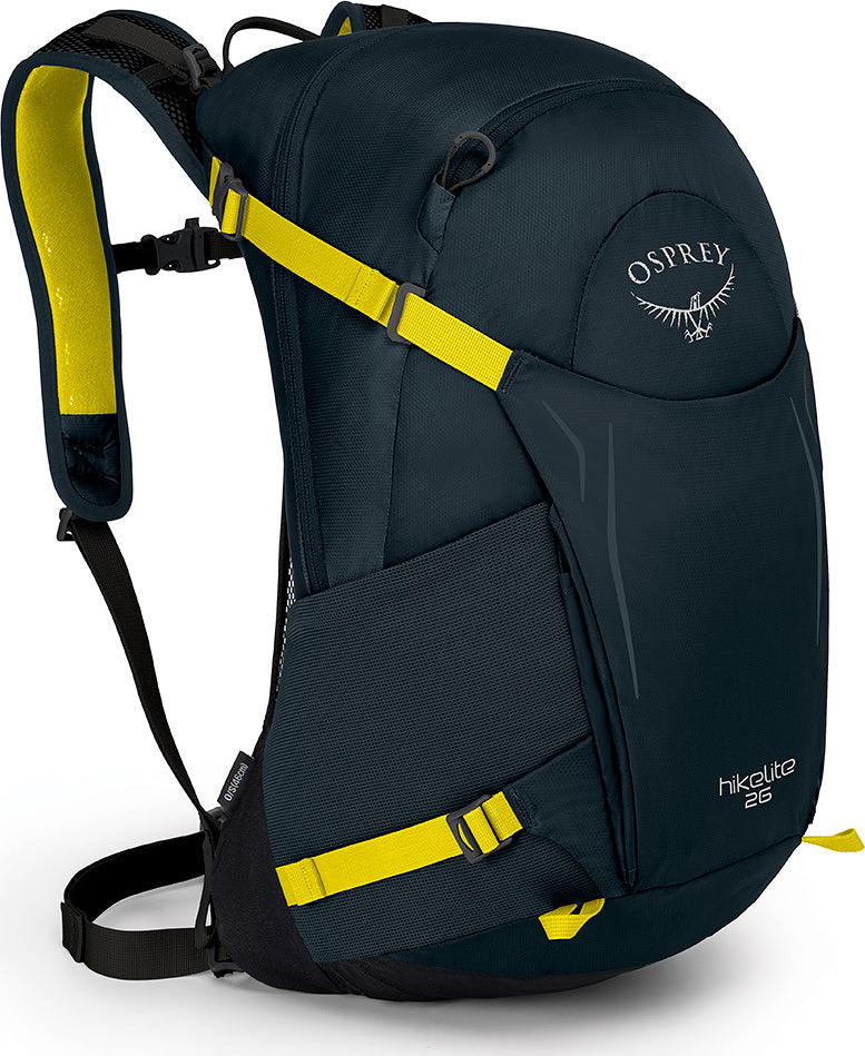 The HIKELITE 26L Backpack from Osprey is the perfect choice for any adventure. Whether you’re heading to class or heading to the mountains, the integrated raincover is sure to keep your stuff dry. For trips that require more equipment, the trekking pole attachment and internal hydration sleeve fit into the pack without taking up room needed for other essentials. The stretch mesh side pockets provide extra room for storing maps, bottles and other things that need to be grabbed on the go. The Airspeed Suspension and Biostretch Ventilated Harness distribute weight while keeping your back breathable to avoid a build-up of sweat. The removable hipbelt and sternum strap are designed to keep everything securely in place so that you can focus on the hike.