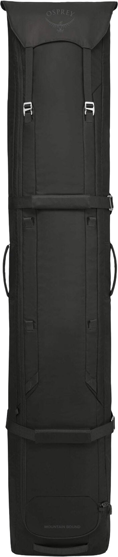 The Mountain Bound Roller Bag's rugged chassis and oversized wheels take variable terrain in stride, while durable, highly water-resistant NanoTough™ fabric, padded sidewalls and internal/external compression secure one or two snowboards or pairs of skis (up to 195 cm) on long travel days.