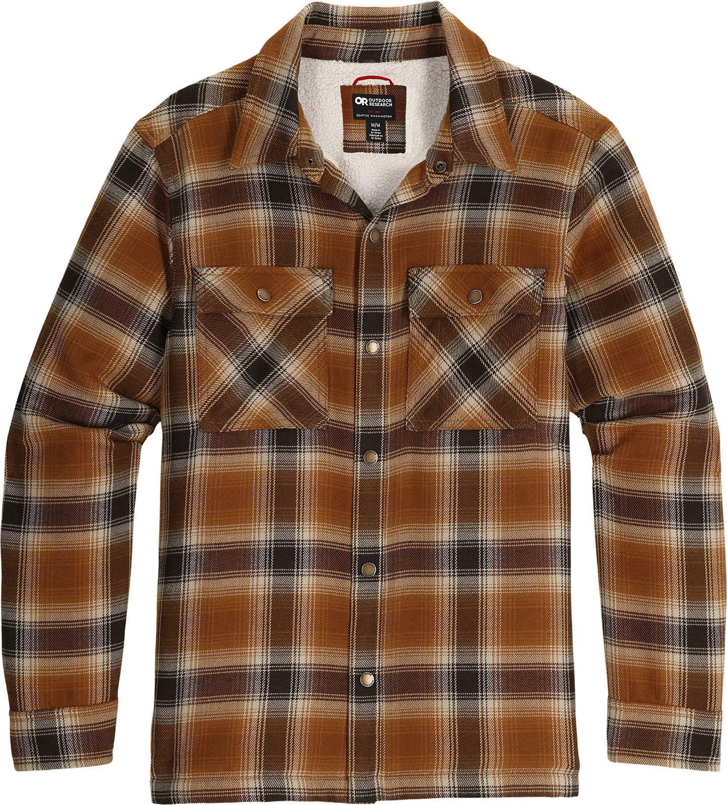 We took our fan-favorite heavyweight Feedback Flannel and added a combo of super-soft sherpa fleece and VerticalX ECO™ insulation, creating the ultimate overshirt for when temperatures drop in the fall and winter. Meet the Feedback Shirt Jacket - the best of a flannel shirt and a shirt jacket, combined into one durable, warm layer. Just as breathable and UPF protected as its flannel cousin, the Feedback's new addition of a fleece liner and 85% recycled Outdoor Research proprietary VerticalX ECO™ add warmth and comfort to a best seller.