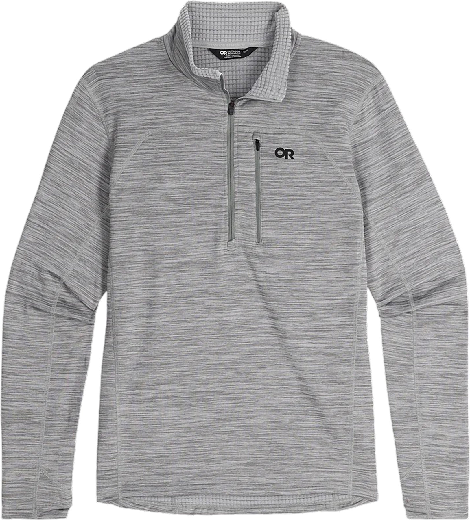 The Vigor Grid Fleece Half Zip is made for technical performance, perfect for layering on cool and cold-weather activities on the trail and in the alpine. Crafted from a bluesign® APPROVED polyester blend, the breathable and insulating Vigor Grid Fleece features thermoregulating ActiveTemp™, a technology that adjusts to body temperature to keep you comfortable during active start-stop activities. The material's movement-mirroring stretch and raglan sleeves allow for an unrestricted range of motion. The flat-seam construction and chafe-free design with dynamic reach provide all-day comfort. Ergonomic-fit thumb holes keep the sleeves pulled down where you like them, and a zip chest pocket keeps gels and phones close by. Featuring a standard fit and built for layering, the breathable, moisture-wicking, and quick-drying Vigor Grid Fleece Half Zip is a foundational piece to building the ultimate outdoor kit.