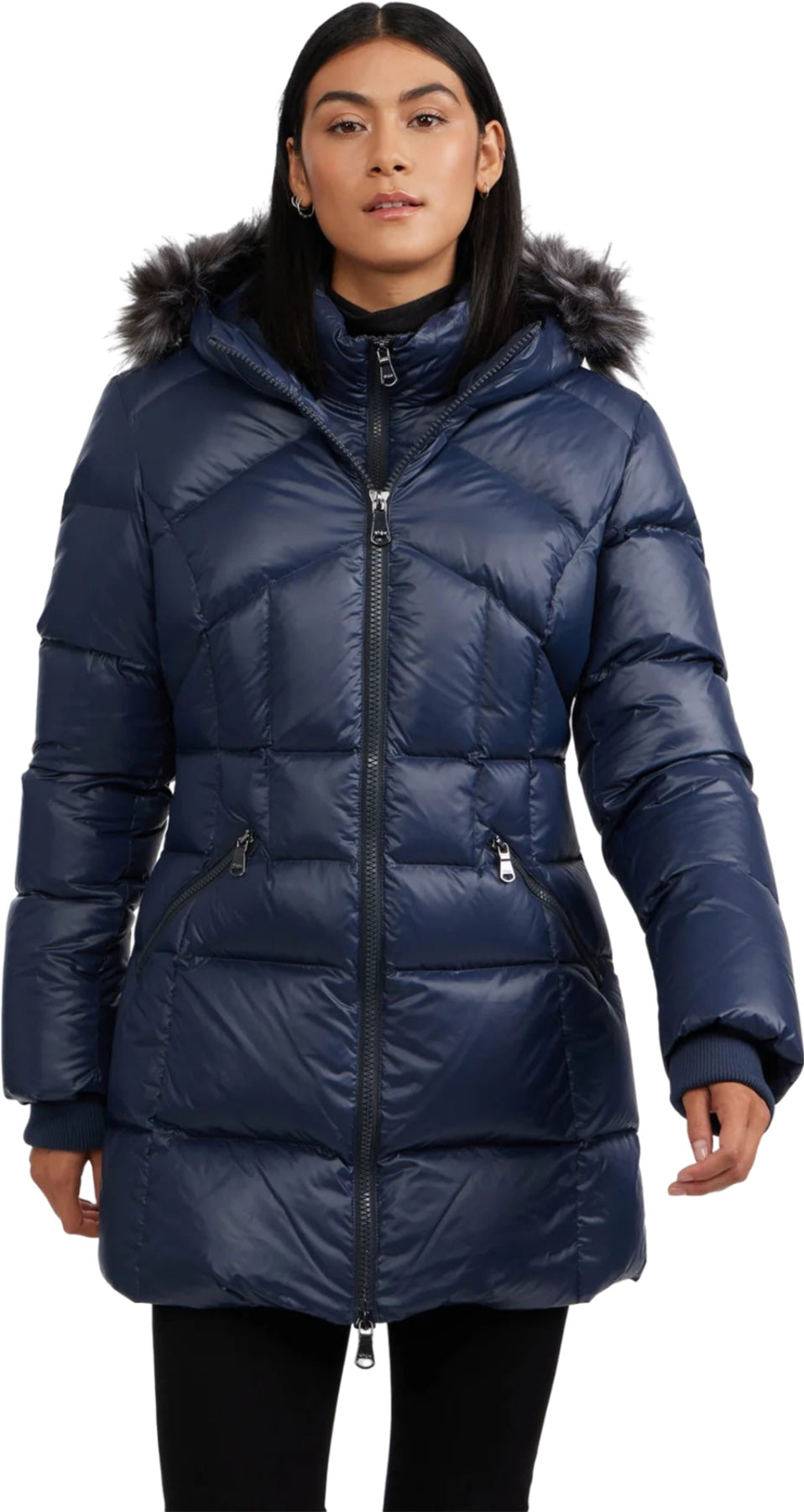 Discover the perfect balance of style and functionality in this mixed-quilt puffer with a fixed hood and detachable fake fur trim. Equipped with cozy rib knit storm cuffs and a fixed bib, this jacket provides a secure fit while repelling water and wind penetration through a shiny ciré coating finish. Experience warmth up to -20°C/-4°F with the four-layer construction and duck down.