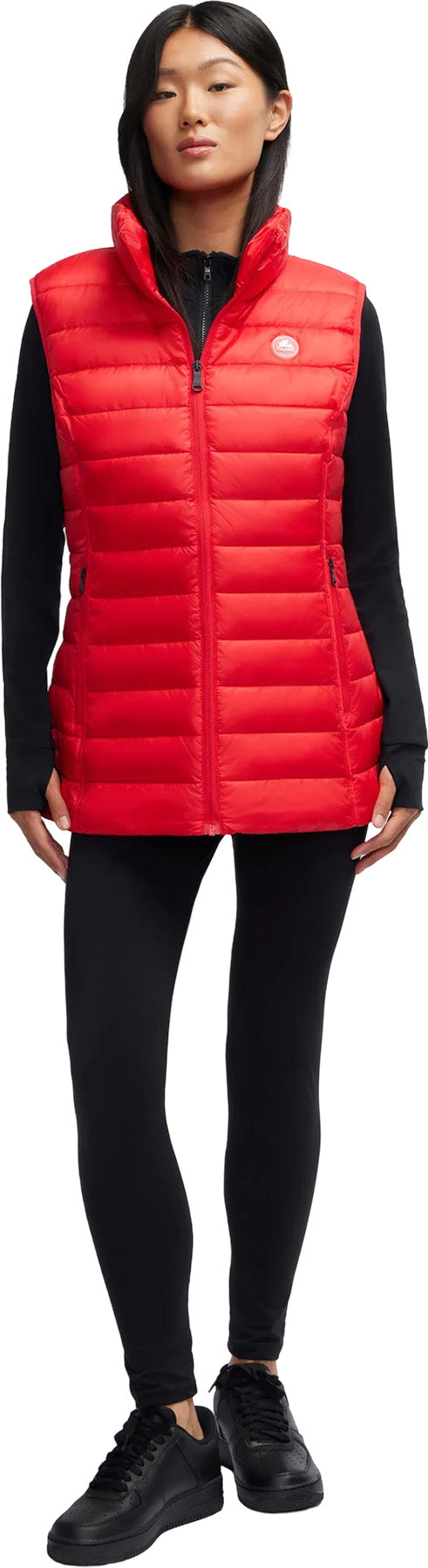 This channel quilted lightweight puffer vest offers a blend of style and practicality. It features an exposed front zipper closure and inset zipper pockets for secure storage and convenience. Designed with a stand collar for added warmth and shell binding seam detailing for a refined finish.