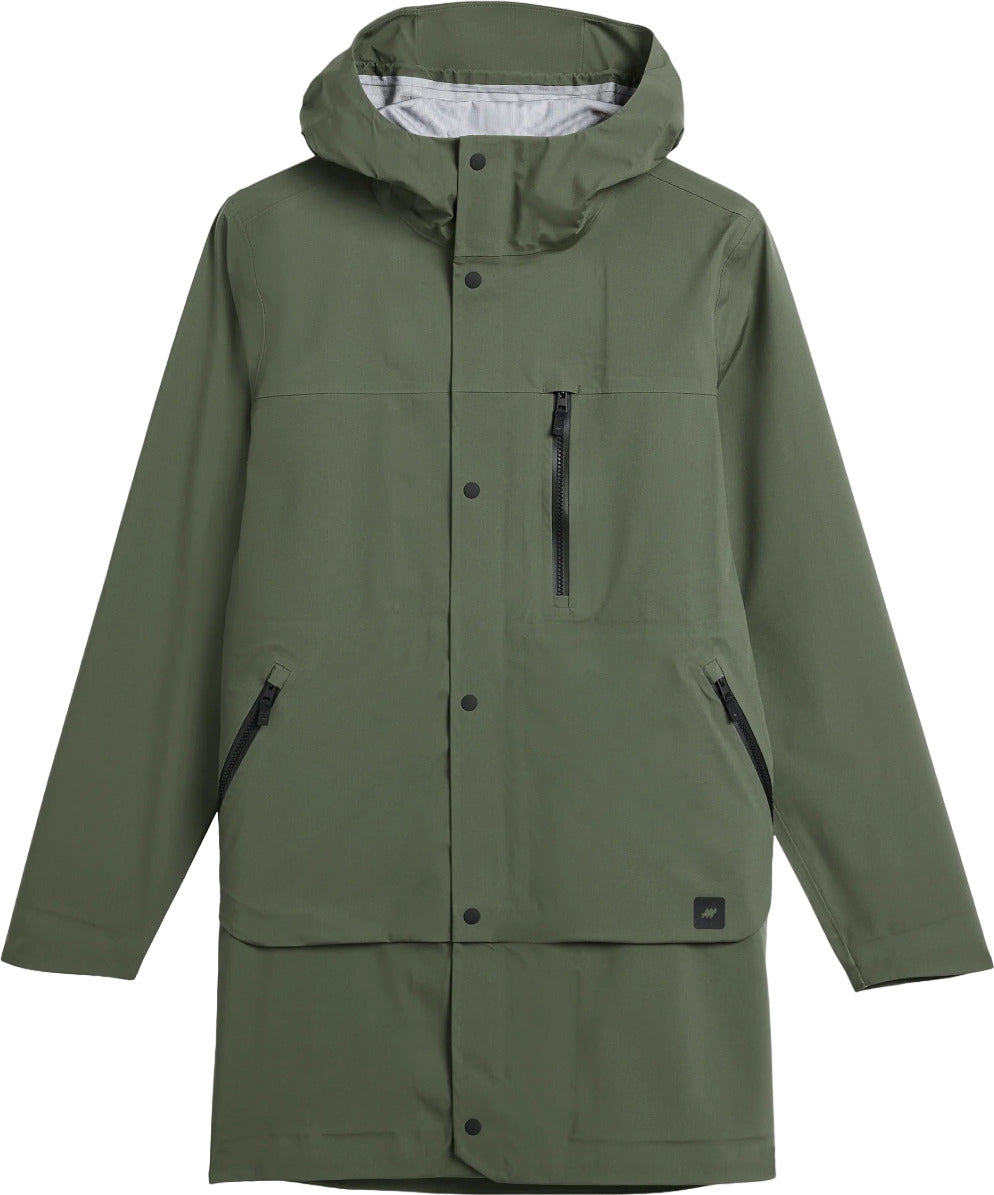 • Casual length, technical stretch, large hood, fashion details and technical accents. It's the trendiest rain jacket around