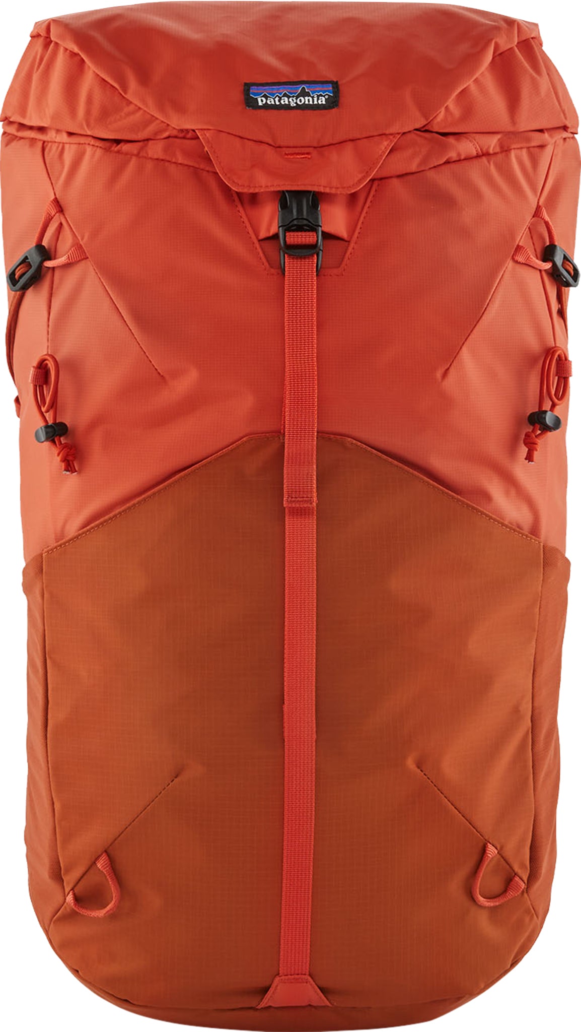 • Shell: 4-oz 140-denier 100% recycled nylon ripstop. Boot: 4.1-oz 210-denier 100% recycled nylon ripstop. Rain cover: 2.2-oz 100% recycled polyester taffeta. All with a PU coating and a PFC-free DWR finish (durable water-repellent coating that does not contain perfluorinated chemicals). Back panel and straps: 100% polyester mesh. Stretch-mesh pockets: 9.4-oz 66% nylon/34% spandex. Lining: 3-oz 200-denier 100% recycled polyester with a PU coating