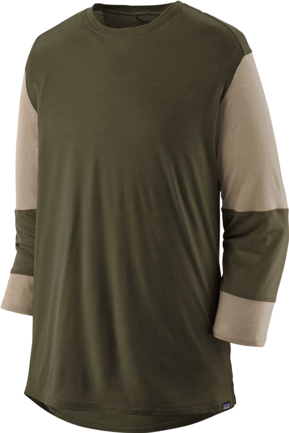 Our Patagonia Men's Merino 3/4-Sleeved Bike Jersey is soft and highly breathable; it wicks moisture on climbs and provides extra coverage for descents.