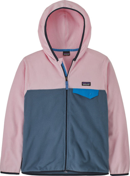 The cozy Boy’s MICRO D Snap-T sweatshirt from Patagonia is unbelievably soft and light provides steadfast warmth, dries quickly and doubles as a pillow. The polyester 100% recycled microfleece plays the part of an insulated midlayer when paired with a shell or works as a comfortable stand-alone in moderate conditions. The full-zip design features contrast color-blocking, fleece wind flap with webbing trim, zipper garage and reflective webbing pull. Handwarmer pockets and left-chest snap pocket with nylon flap hold essentials. Spandex binding at hood, sleeves and hem retain warmth and provide a secure fit.