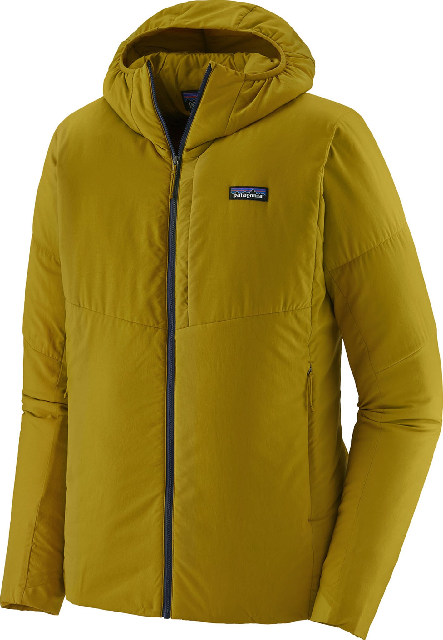 The men's NANO-AIR Hoody by Patagonia is a warm, stretchy, breathable layer you can put on and leave on through high-output, stop-and-go activities in cold weather. FullRange insulation offers a new standard for technical insulation, merging the comfort and breathability of open fleece with the protection and warmth of a puffy while using recycled inputs to the greatest possible degree. The woven textured yarn face fabric is soft and durable, and better resists pilling than the original. Full mechanical stretch creates a close, sculpted fit over baselayers and an uninhibited range of motion. The trim, stretchy hood is designed for next-to-noggin use, though it’ll still fit snugly over low-profile helmets. A dual-adjustable drawcord hem seals in warmth. When the belay goes from chilly to downright cold, pull on a lightweight shell and feel the Nano-Air’s thermal properties skyrocket.