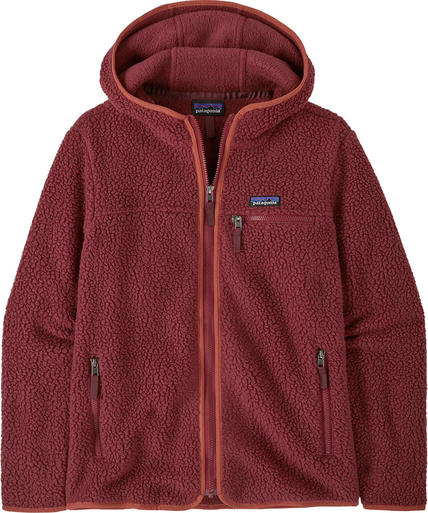 The Women’s RETRO Pile Hoody from Patagonia is back, and this time it’s double-sided. The jacket is made of plush, 100% recycled polyester double-sided shearling and has a tall collar incorporated into a three-panel hood for extra warmth. Spandex binding at hood opening, cuffs, hem and center-front zip give the jacket a clean finish. Curved back yoke and panelled seams at the hem create a flattering fit. Mesh-lined handwarmer pockets with grosgrain zipper pulls secure valuables.
